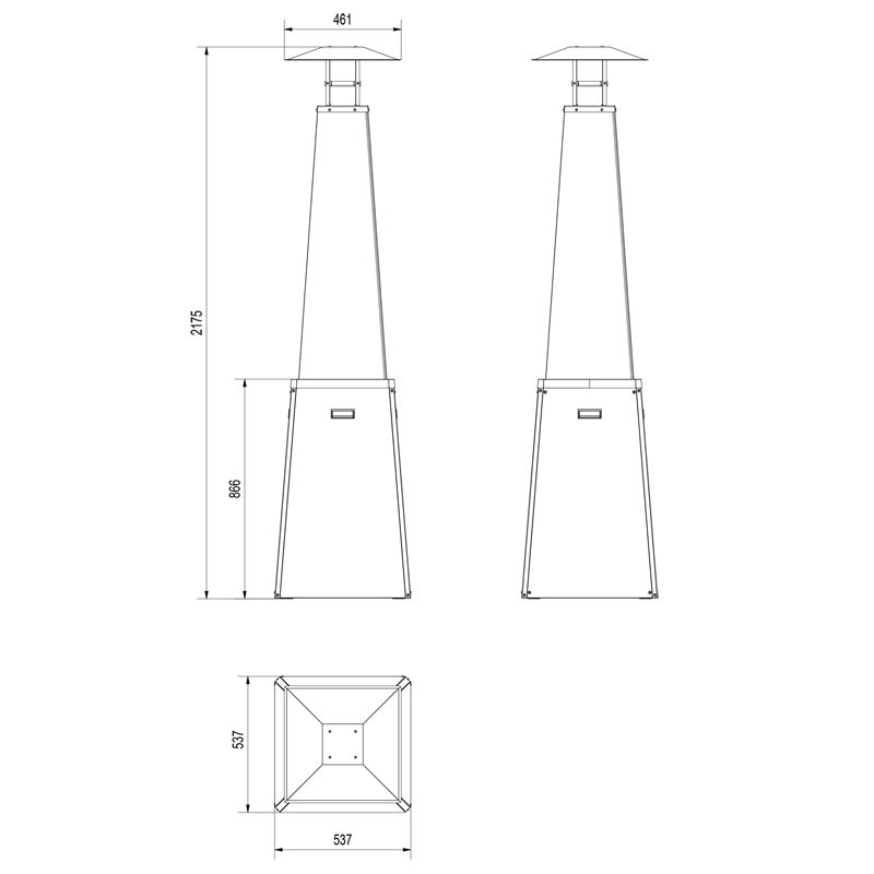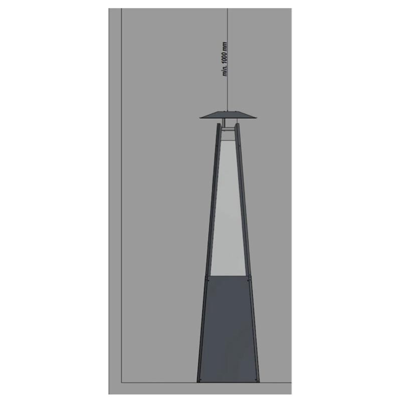 Parasol gazowy Umbrella BS zasilany paliwem gazowym jest urządzeniem otwartym, bez systemu odprowadzania spalin, przeznaczonym do ogrzewania powierzchni odkrytych i/lub wentylowanych. Bardzo niskie współczynniki emisyjne gwarantują bezpieczeństwo nawet przy użytkowaniu na niedużych, dobrze wentylowanych powierzchniach zakrytych (minimum 25% odsłoniętej powierzchni użytkowej). Przy wyborze umiejscowienia ogrzewacza należy bezwzględnie pamiętać o minimalnych odległościach od materiałów łatwopalnych i wrażliwych na wysokie temperatury.