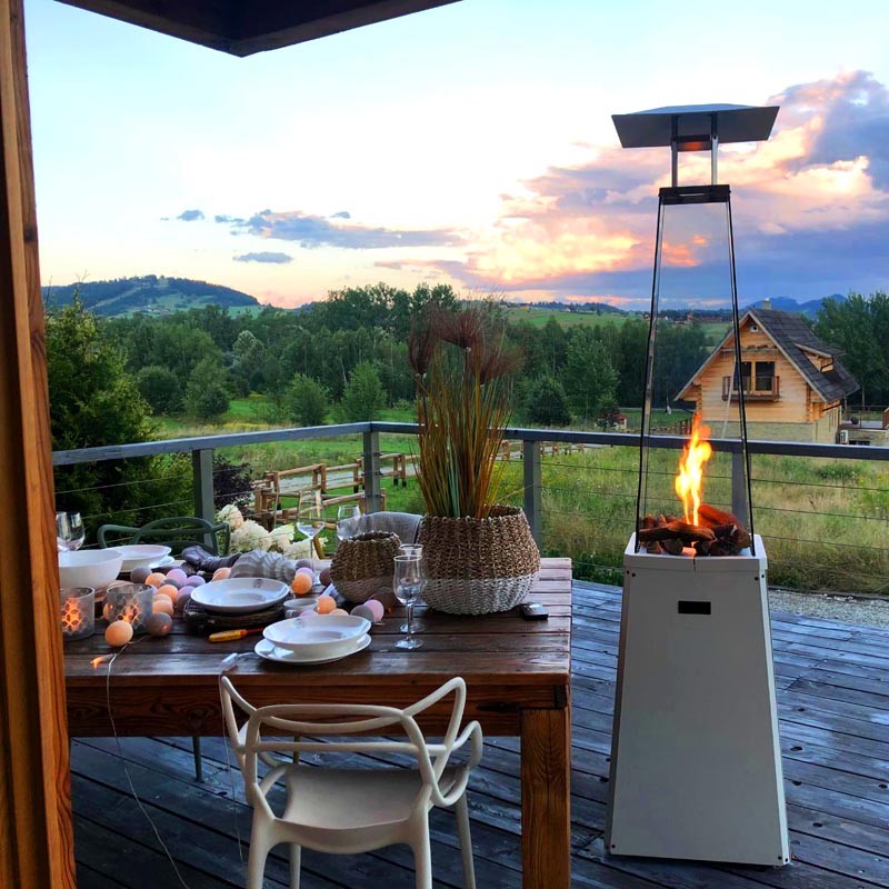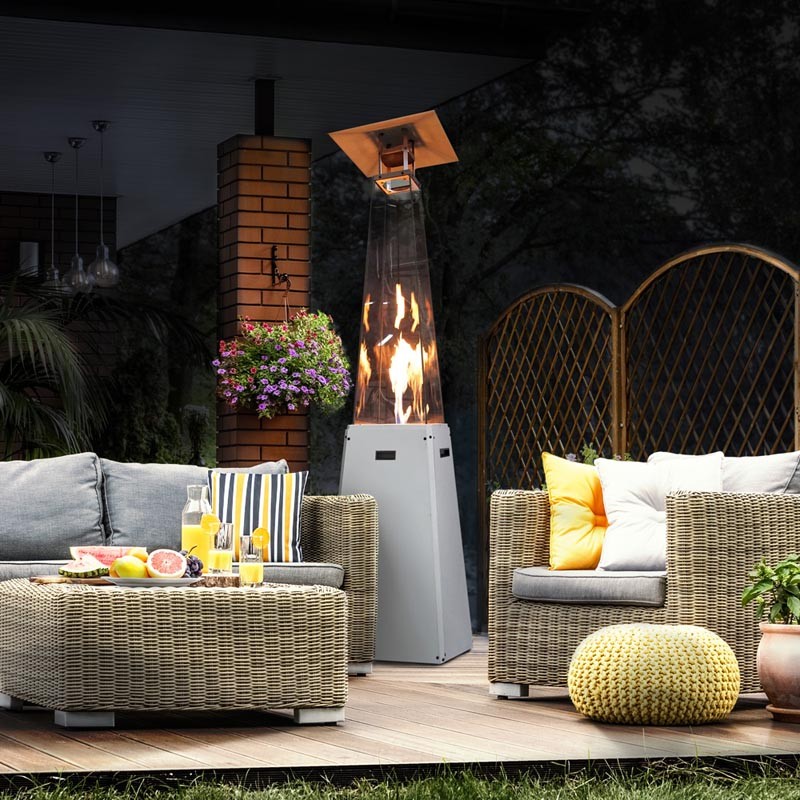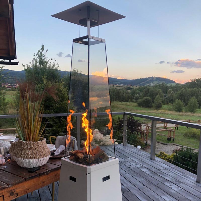 Szklane osłony nie tylko stabilizują płomień, ale równocześnie chronią przed bezpośrednim dostępem do ognia i potęgują jego blask. Dzięki bezpiecznemu i wydajnemu palnikowi ogrzewacz nie generuje dymu, dzięki czemu szyby nie wymagają kłopotliwego czyszczenia. Dedykowany pokrowiec zapewnia ochronę produktu podczas przechowywania i pomaga utrzymać czystość ogrzewacza.
