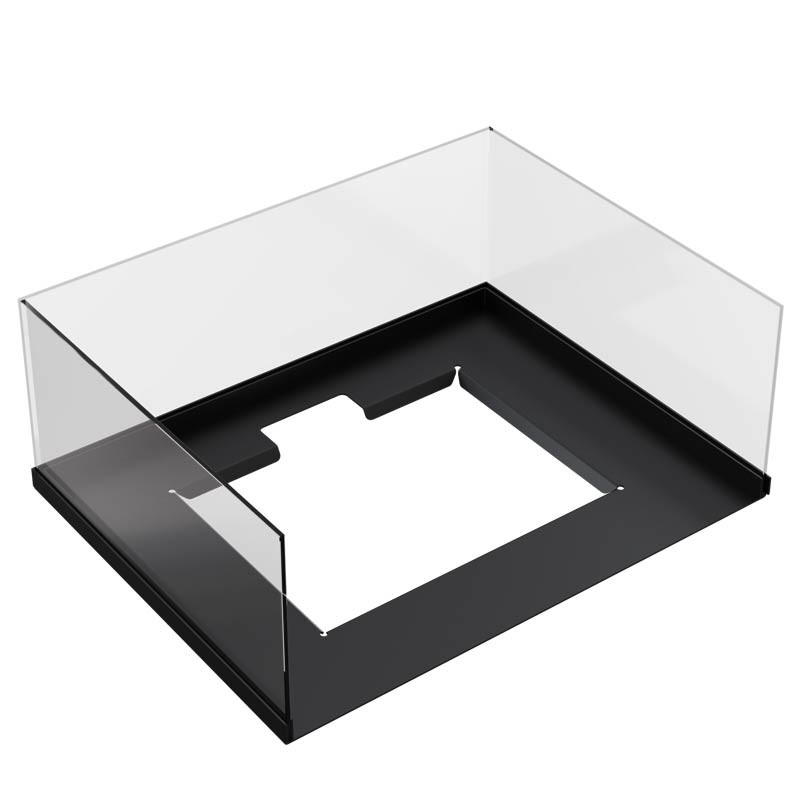 Kompletne przeszklenie poprzez zablokowanie bezpośredniego dostępu do ognia zwiększa bezpieczeństwo użytkowania, a odbijające się w szklanych panelach płomienie potęgują efekt wizualny naturalnie tańczącego blasku. Dzięki umieszczeniu szyb w prowadnicach w łatwy sposób można je wyjąć i w razie potrzeby oczyścić.