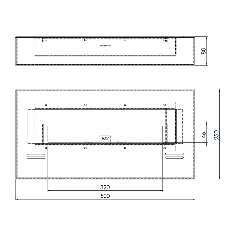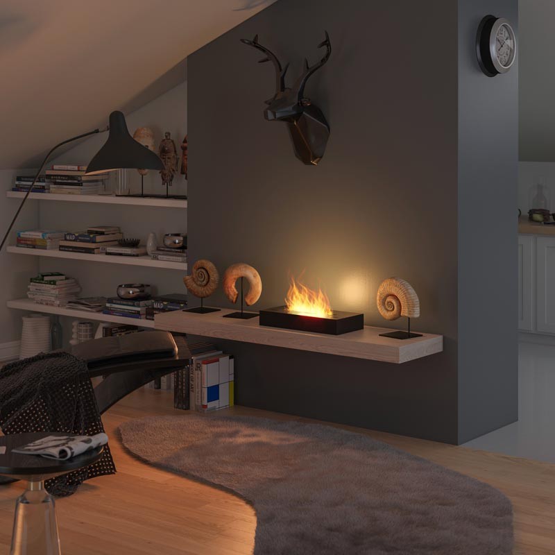 Częścią integralną modelu jest wbudowany palnik Linia 320 mm. Dzięki zintegrowanej zasuwie urządzenie posiada płynną regulację wysokości ognia, a wygaszane jest poprzez całkowite odcięcie dopływu tlenu do komory spalania. Jedną z wielu zalet tego paleniska jest jego bezpieczeństwo. Poprzez wykorzystanie wewnątrz paleniska unikalnego, ceramicznego wkładu chłonnego, biopaliwo nie ulegnie ewentualnemu wylaniu ze zbiornika nawet w momencie wywrócenia urządzenia. Wkład chłonny zapewnia również dłuższe i bardziej równomierne spalanie biopaliwa.