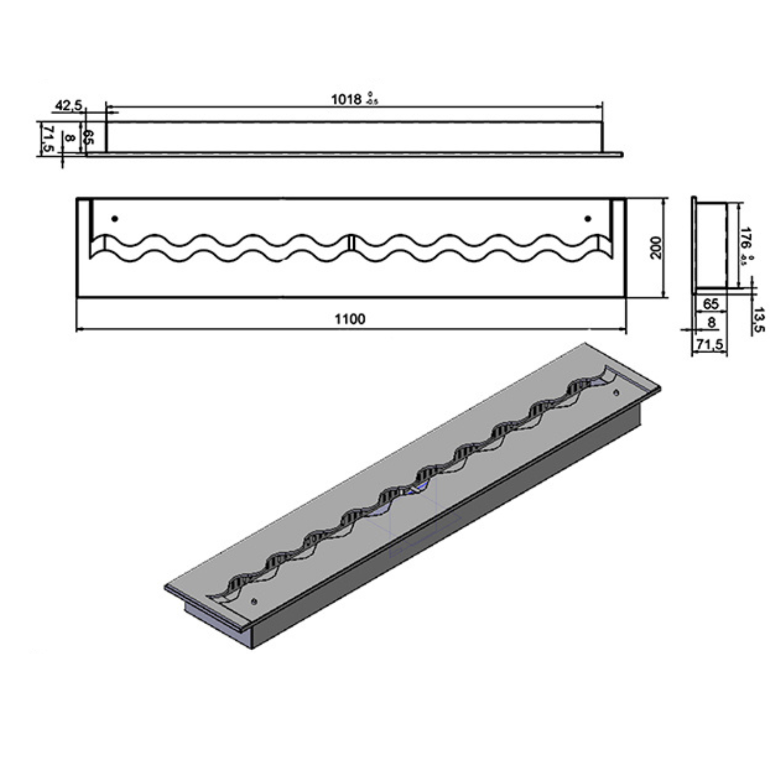 Palnik Fala 1100×200 inox