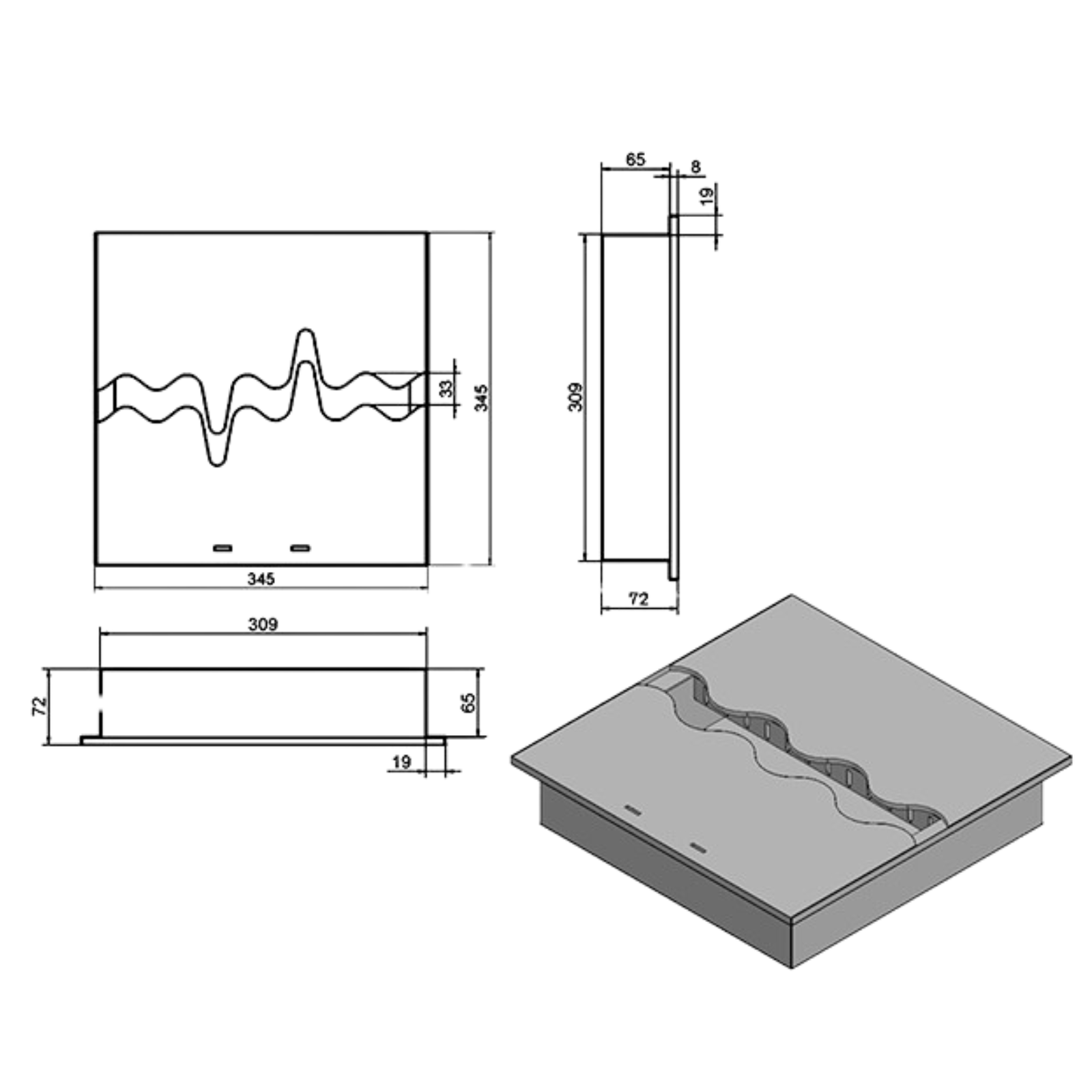 Palnik Fala 345×345 niesymetryczny czarny