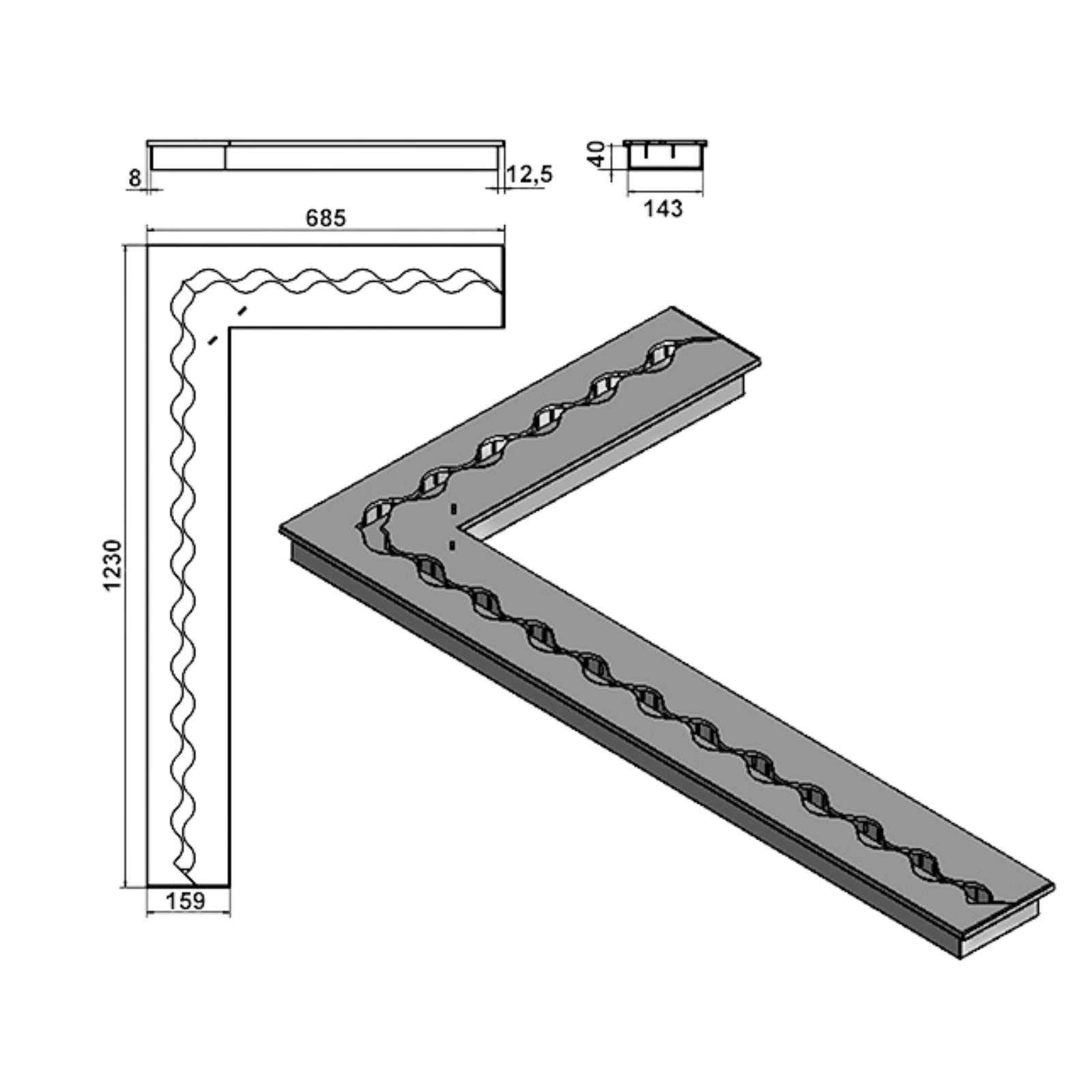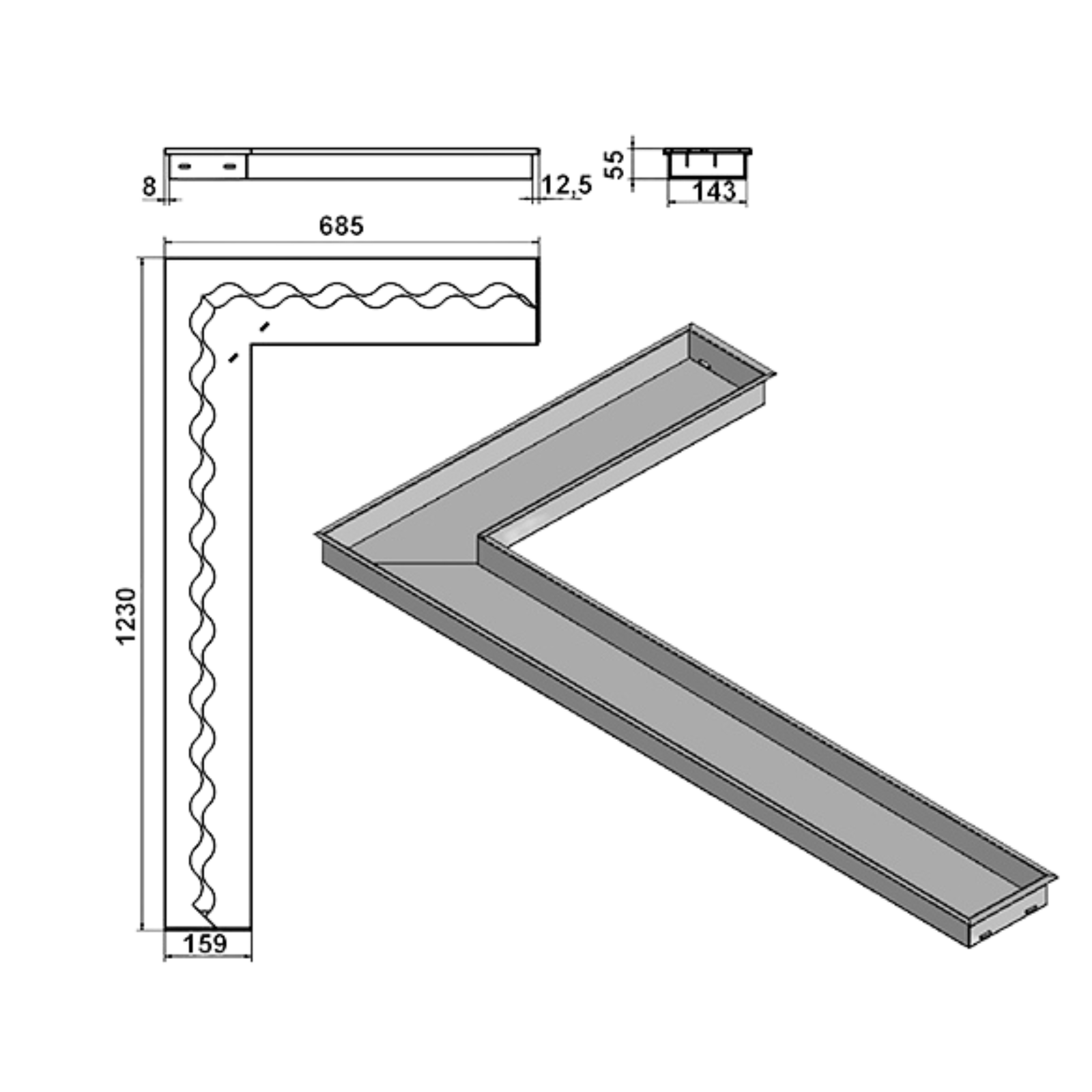 Palnik Fala Corner 1230x685x160 czarny