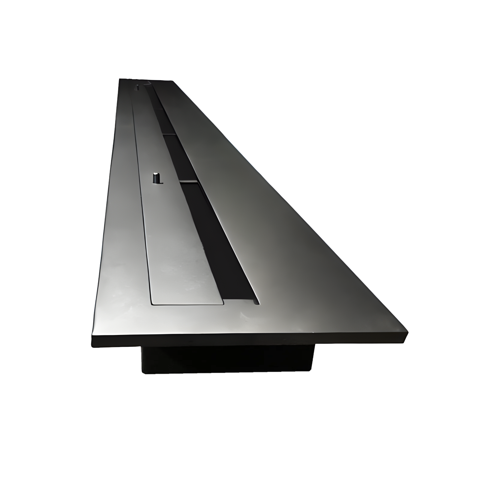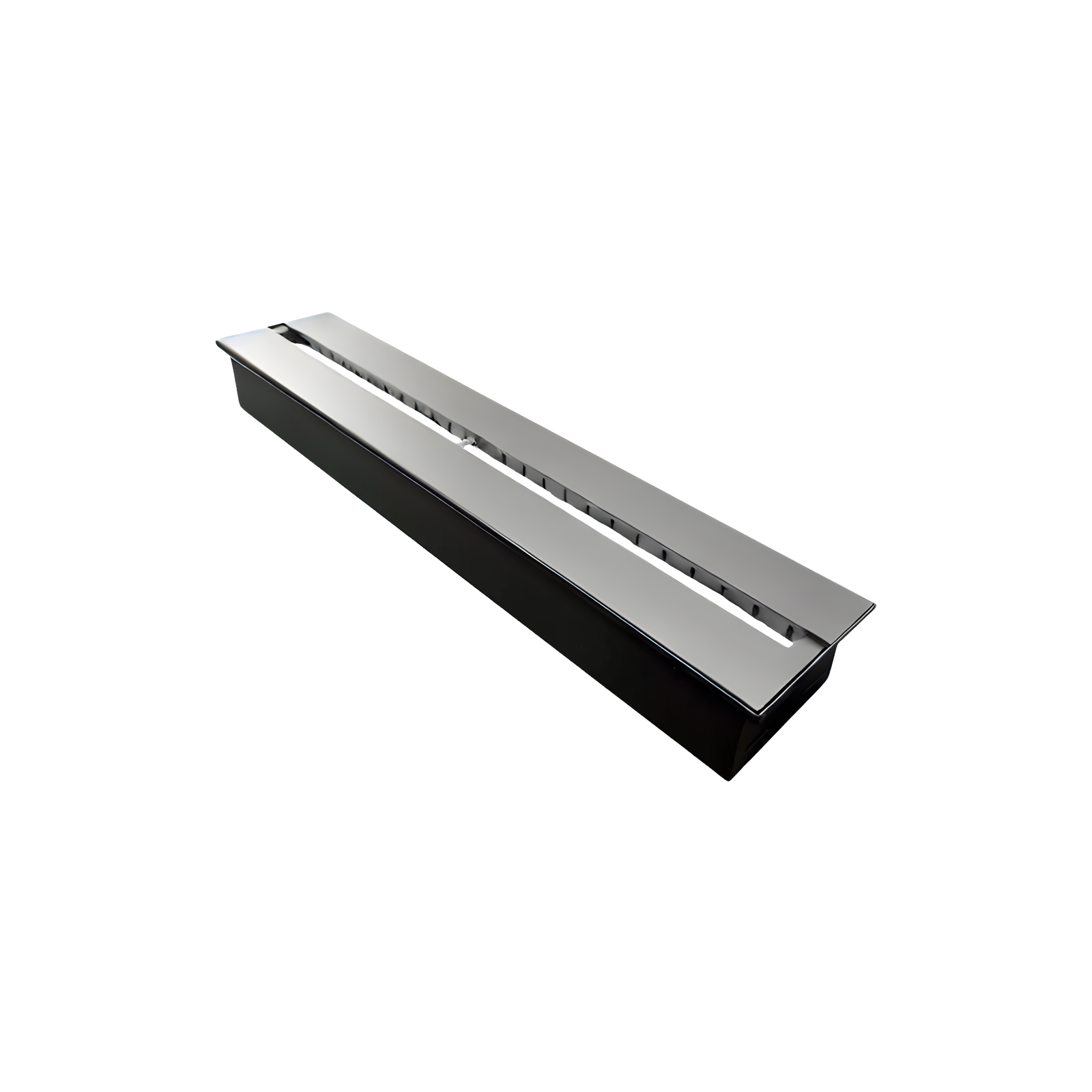 Palnik LINIA to innowacyjny produkt KAMI z linią ognia w kształcie linii prostej. Dzięki temu płomień nie jest jednolity, lecz nabiera dynamiki i przestrzenności, stając się wyjątkowym elementem dekoracyjnym nowoczesnych wnętrz. Korpus palnika wykonany jest z wysokogatunkowej stali o grubości 1,5 mm, malowanej proszkowo farbą termoodporną w eleganckim czarnym półmacie. Pokrywa górna, zbudowana z dwóch części, to element stalowy o grubości 5 mm, wycinany laserowo z najwyższą precyzją. Dzięki temu, nawet przy intensywnym nagrzewaniu, nie ulega odkształceniom i zachowuje pierwotny kształt. Idealne spasowanie krawędzi pokrywy zapewnia dokładną regulację wielkości płomienia oraz jego szybkie, bezpieczne wygaszanie.