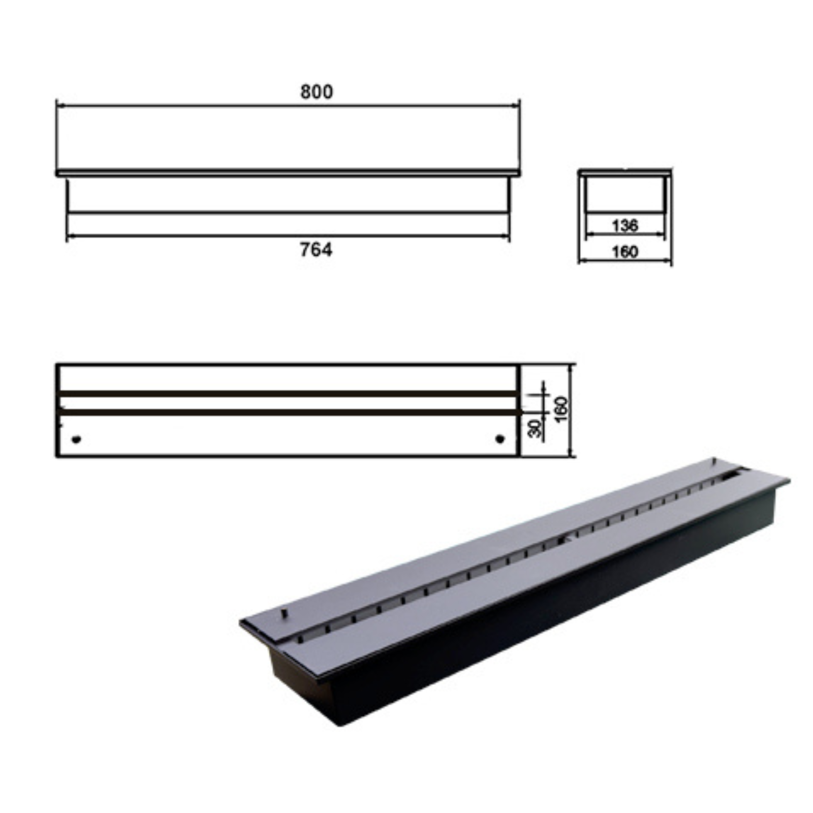 Palnik Linia 800×160 czarny