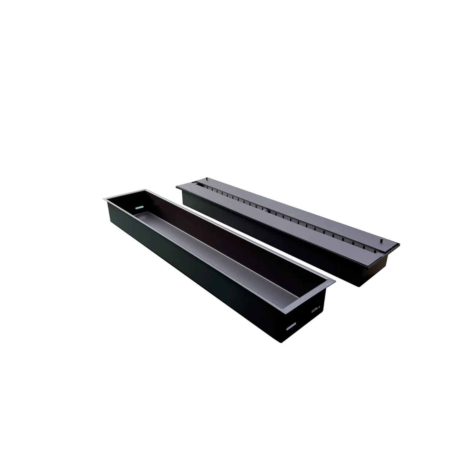 Palnik LINIA to innowacyjny produkt KAMI z linią ognia w kształcie linii prostej. Dzięki temu płomień nie jest jednolity, lecz nabiera dynamiki i przestrzenności, stając się wyjątkowym elementem dekoracyjnym nowoczesnych wnętrz. Korpus palnika wykonany jest z wysokogatunkowej stali o grubości 1,5 mm, malowanej proszkowo farbą termoodporną w eleganckim czarnym półmacie. Pokrywa górna, zbudowana z dwóch części, to element stalowy o grubości 5 mm, wycinany laserowo z najwyższą precyzją. Dzięki temu, nawet przy intensywnym nagrzewaniu, nie ulega odkształceniom i zachowuje pierwotny kształt. Idealne spasowanie krawędzi pokrywy zapewnia dokładną regulację wielkości płomienia oraz jego szybkie, bezpieczne wygaszanie.
