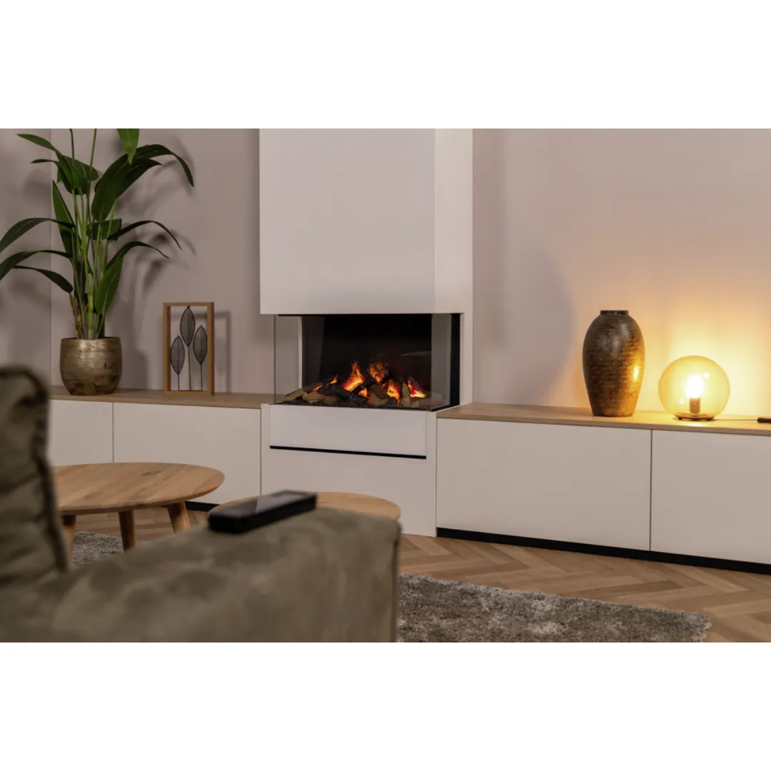 Wkład elektryczny Dimplex 3 STEP to połączenie nowoczesności i funkcjonalności, które pozwala na stworzenie wymarzonego kominka w dowolnym wnętrzu. Jego elegancki design doskonale komponuje się z różnymi stylami aranżacyjnymi i umożliwia montaż w zabudowie. Dzięki zaawansowanej technologii Optimyst model ten zapewnia niezwykle realistyczny efekt płomieni i dymu, tworząc przytulną atmosferę bez ryzyka poparzenia czy innych zagrożeń. Dzięki trzem opcjom montażu, model 3 Step doskonale integruje się z wystrojem pomieszczenia. Efekt płomienia Optimyst®, tworzony za pomocą chłodnej mgiełki wodnej i oświetlenia LED RGB, oferuje imponujący obraz ognia. Urządzenie jest bezpieczne w użytkowaniu, nie emituje dymu ani popiołu, a jego ustawienia można dostosować za pomocą pilota lub aplikacji. Blask płomieni tworzy przytulną atmosferę, którą dodatkowo wzmacnia ciepłe powietrze wydobywające się z kominka oraz dźwięk trzaskających iskier.