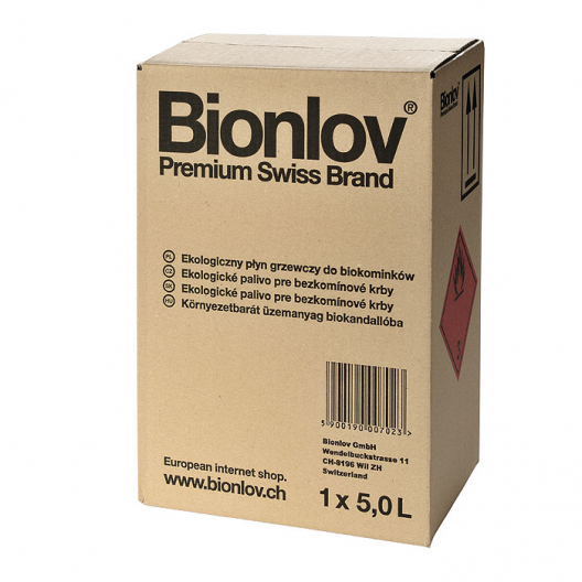 Bionlov® Premium to wysokiej jakości biologiczny płyn (paliwo) grzewczy do spalania w biokominkach i innych urządzeniach z odkrytym ogniem. Doskonały do ogrzewania pomieszczeń. Bionlov® Premium to odnawialne źródło energii. Produkowany jest na bazie najwyższej jakości alkoholu etylowego otrzymywanego w procesie destylacji surowców roślinnych. Dodatkowo jest uszlachetniony i oczyszczony na nowoczesnych urządzeniach molekularnych. Produktem spalania biopaliwa są para wodna i CO2 w ilościach bezpiecznych i porównywalnych do wydychanych przez człowieka.